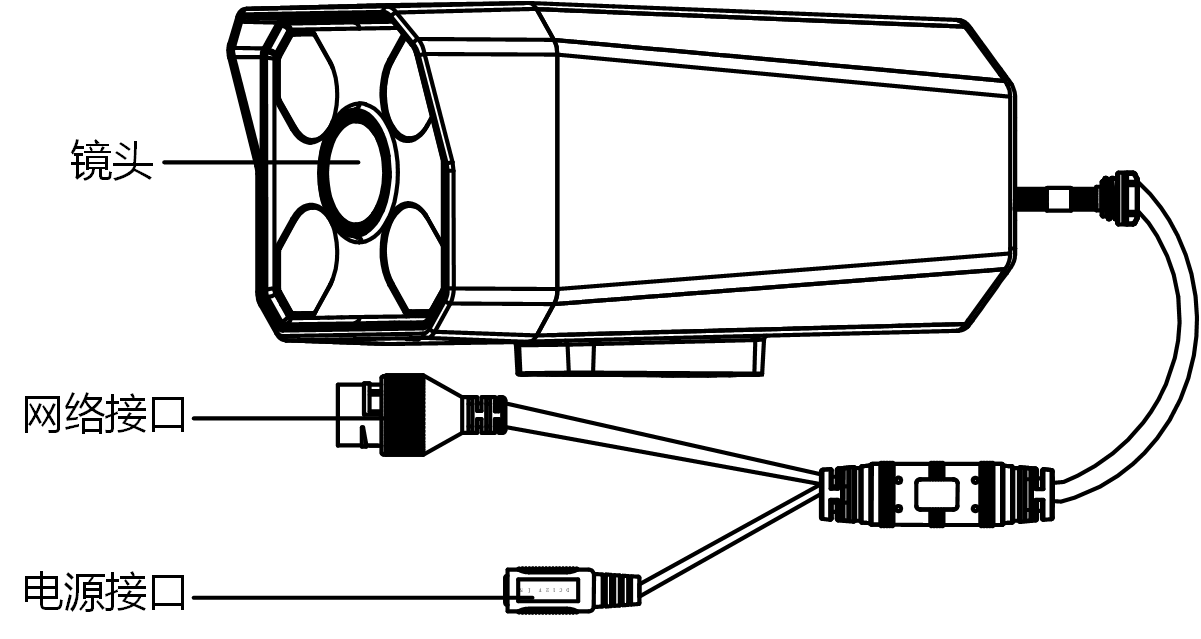 网络摄像机外观和线缆。
