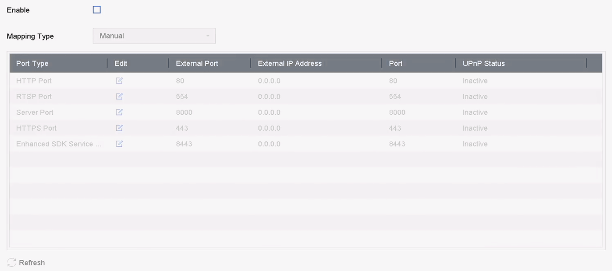 External Port indicates the port No. for port mapping
